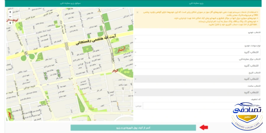 مراحل نوبت گیری اینترنتی معاینه فنی خودرو از سایت تهران من