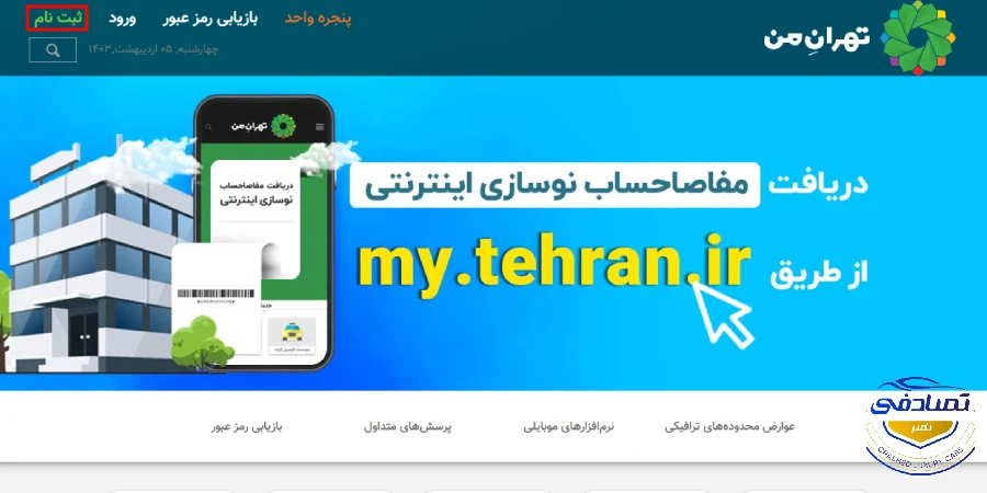 در مرحله اول به سامانه اینترنتی نوبت دهی معاینه فنی به نام تهران من my.tehran.ir مراجعه کنید. اگر برای بار اول است که قصد استفاده از خدمات این سامانه را دارید باید در قدم اول در سایت ثبت نام کنید.